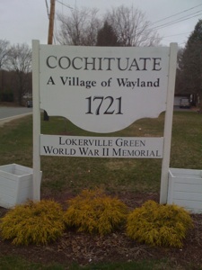 On the Lokerville Green stands a proud sign Announcing Cochituate